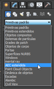 (Geometria), depois na lista suspensa (no presente, exibe "Primitivas padrão"), escolha AEC estendida.