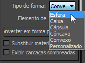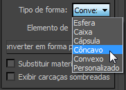 Implementação de Formatos físicos, abra o menu suspenso Tipo de forma e selecione Côncavo.