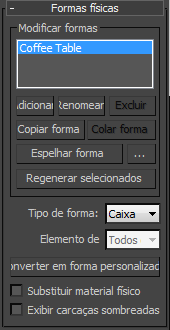 A regra geral é a de utilizar a geometria mais simples que é possível obter. Neste caso, a mesa de centro é uma caixa simples que é estática, de modo que Original irá funcionar corretamente. Abra o menu suspenso Tipo de forma e escolha Original.