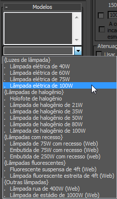 painel Modificar. Em Modelos, abra a lista suspensa e selecione a lâmpada de 100W.
