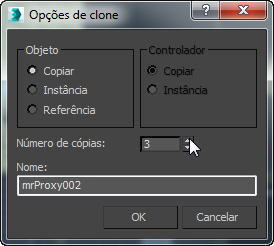 Selecionar todos os quatro objetos proxy e SHIFT+ move de uma só vez para baixo. Na caixa de diálogo Clone Options, assegure-se de que Copiar esteja selecionado e, a seguir, clique em OK.