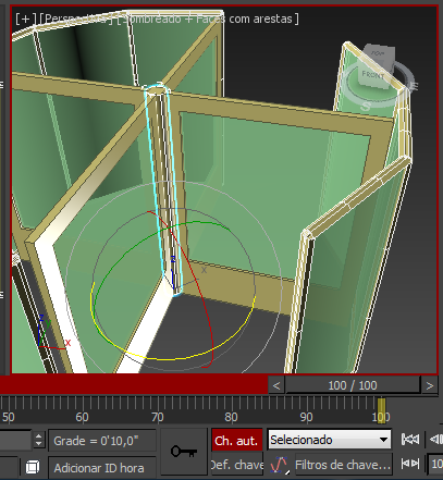 Para fazer com que a porta giratória gire, primeiro você deve conectar as quatro portas ao cubo. A seguir, usando o controle deslizante de tempo, é possível animar a rotação do cubo para girar as portas.