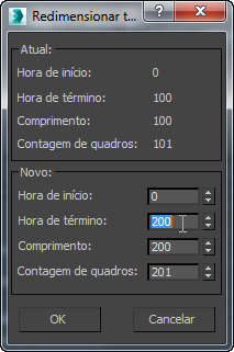 - Na caixa de diálogo para redimensionar o tempo, alterar a hora de fim para 200e, a seguir, clique em OK.