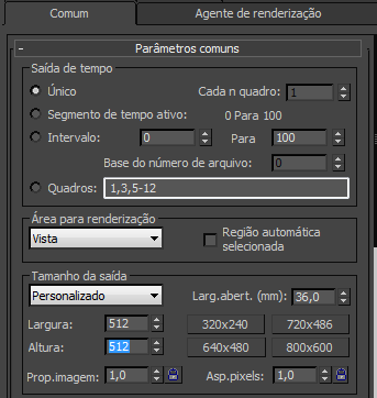 grupo Tamanho de saída, defina a Largura e a Altura como 512.