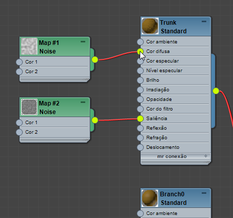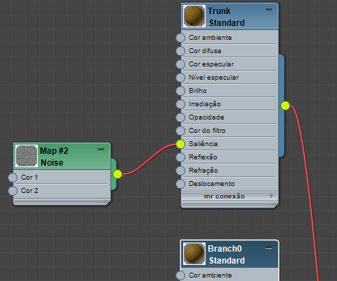 grupo Padrão), arraste essa entrada para a Vista ativa e ligue-a ao soquete Cor difusa do submaterialTronco.