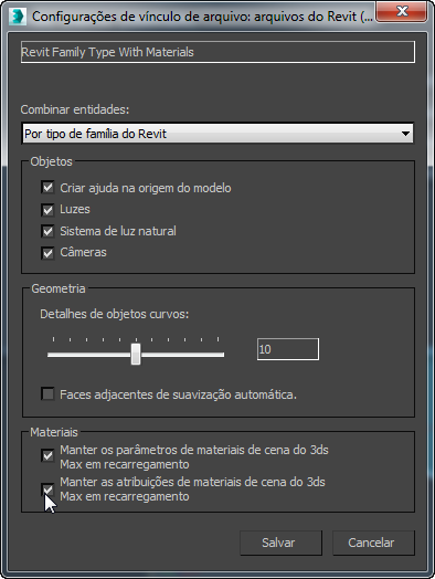 Essas opções garantem que os materiais do 3ds Max sejam preservados quando você vincula uma cena ou recarrega uma cena vinculada.