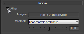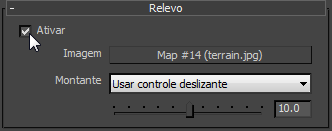 Para que o terreno mostre uma textura de mapas em viewports, ele precisa de um modificador Mapa do UVW.