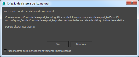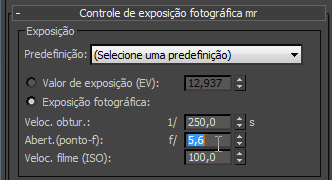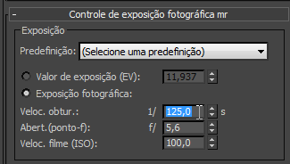 grupo Exposição, escolha Luz natural externa de iluminação física, céu limpo na lista suspensa Predefinição.