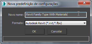 - Na caixa de diálogo Predefinição de novas configurações que aparece, dê nome à nova predefinição Tipo de família do Revit com materiaise clique em OK.