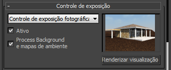- Na implementação Controle de exposição, verifique se a opção Ativo está ativada e clique no botão Renderizar visualização para verificar rapidamente como a predefinição de exposição afetará a cena.