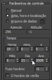 implementação Parâmetros de controle e, no grupo Tempo, altere o valor Horas para 19ou 7 PM. Altere o valor de minutos para 0. Além disso, altere Mês para 6 e Dia para 21.