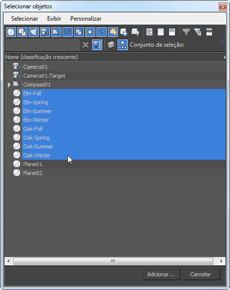 O 3ds Max abre a caixa de diálogo Selecionar objetos.