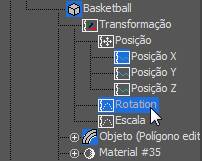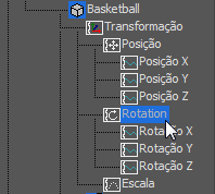 Agora a bola de basquete tem uma única Trilha de rotação, sem Trilhas de rotação X, Y, e Z subordinadas.