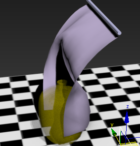 Agora que você tem experiência com corpos rígidos do MassFX, é possível experimentar o mCloth. Esta é uma versão do modificador Tecido padrão que funciona em simulações MassFX. Os objetos mCloth dinâmicos podem afetar e serem afetados por outros objetos na simulação, incluindo objetos de tecido e corpos rígidos.