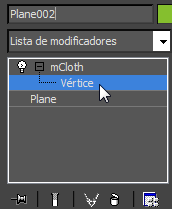 e expanda a entrada mCloth, para que o nível de subobjeto Vértice seja mostrado. Clique na entrada Vértice.