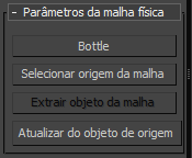 para excluir a origem de malha. Selecione o objeto Garrafa novamente. A origem de malha não é mais necessária no momento, mas é possível derivá-la novamente a partir da forma física Extrair objeto de malha na implementação Parâmetros de malha física.