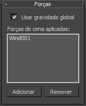 , implementação Forças, clique em Adicionar e selecione a distorção espacial Vento. O nome da distorção espacial aparece na lista Forças de cena aplicadas.