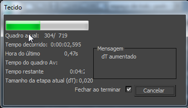 O 3ds Max exibe uma caixa de diálogo de progresso enquanto estende a simulação de tecido.
