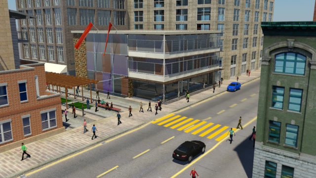 grupo Pessoas, arraste o controle deslizante Densidade até a direita para aumentar a densidade das multidões na calçada.