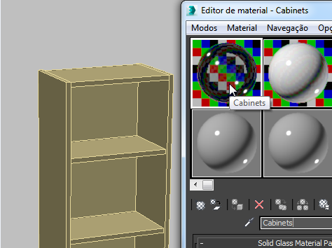 - Clique na ranhura da amostra superior esquerda para torná-la ativa. O material nessa ranhura é denominado Armários.