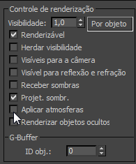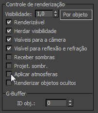 grupo Controle de renderização, assegure-se de que Por objeto (não Por camada) está ativo e desative Herdar visibilidade, Visível para a câmera, Visível para reflexão e refração, Receber sombras e Aplicar atmosferas. Clique em OK.
