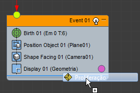 O operador Spawn irá gerar um novo conjunto de partículas entre as definidas em Evento 001.