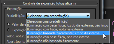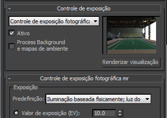 O Controle de exposição é comparável às configurações do obturador e de abertura de uma câmera. Ele ajusta o brilho e o contraste em uma imagem renderizada. Ele não afeta a quantidade de iluminação real na cena.