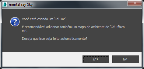O 3ds Max abre a caixa de diálogo "mental ray céu”, perguntando se você deseja adicionar um mapa de ambiente “Céu físico mr” para o plano de fundo de sua cena.