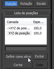- Na caixa suspensa da Lista de Posição, realce o controlador da segunda Posição XYZ e clique em Definir como ativo.