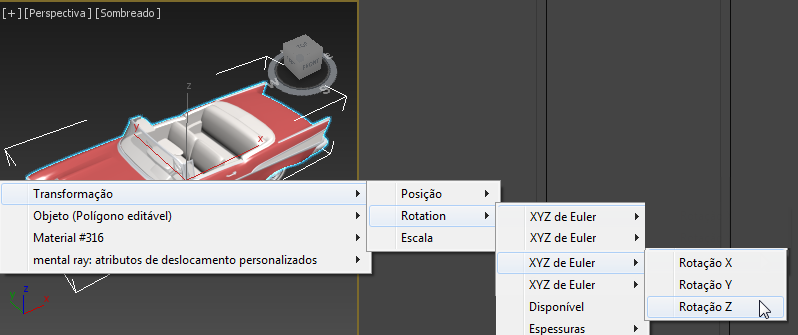 - No viewport superior, rotacione o carro até que o párachoque frontal esteja apontando para a esquerda.