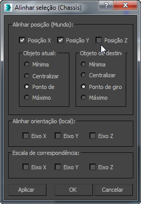 (Alinhar) e, a seguir, na viewport, clique no objeto Chassis.