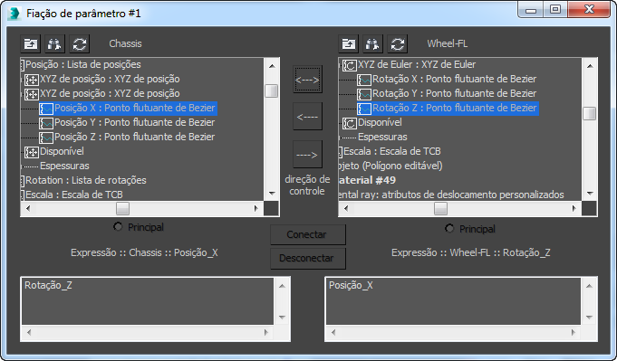 Isto assegura que a Posição Chassis X está controlando a rotação daWheel-FL Z e não o contrário.