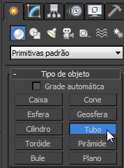 Menu Tipo de objeto, clique para ativar o Tube. O botão Tube é realçado, indicando que está ativo e pronto para ser utilizado.
