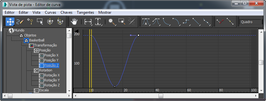 janela Controlador (a lista de objetos e trilhas à esquerda), clique na trilha da Posição Z para exibir a curva para apenas essa trilha.