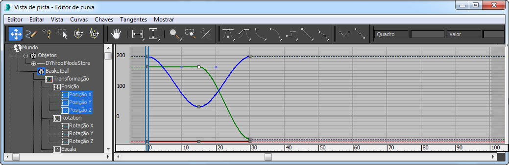 janela do Controlador, clique na trilha da Posição Y para exibir a curva dessa trilha.