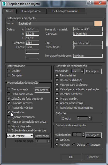 O 3ds Max abrirá a caixa de diálogo de propriedades do objeto.