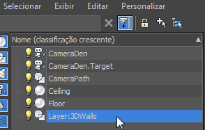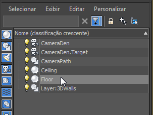 - No painel Scene Explorer, clique e Ctrl+ clique para selecionar os objetos de parede e forro.