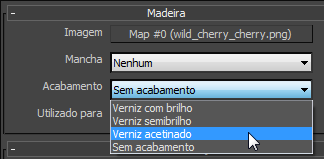 - Na implementação de Madeira, altere o valor de Acabamento para Verniz Acetinado.