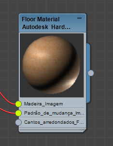 Depois de alterar o bitmap, a visualização na barra de título do nóMaterial do Piso exibe a nova granulação da madeira.
