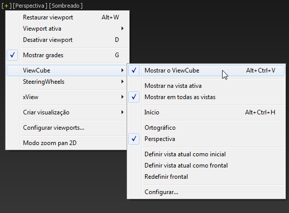 - Na viewport Perspectiva, clique com o botão direito no ViewCube e selecione Set Current View As Home (Definir a vista atual como página inicial).