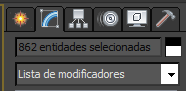 Base de todos os objetos são selecionados. No painel Modificar, você pode ver que 874 objetos selecionados: este é apenas um objeto curto do 875 número total de objetos com materiais inválido.