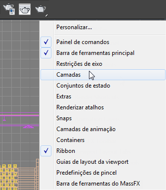 3ds Max Abre a barra de ferramentas Camadas. Uma camada denominada Número de instalações já foi criado para você.
