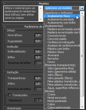 Número de instalações Material é um material padrão, que não é derivados fisicamente. O assistente requer análise de iluminação fotométrica materiais.