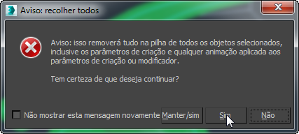 O 3ds Max exibe um aviso sobre a retração da pilha. Clique em Sim.