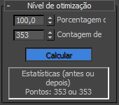 O modificador ProOptimizer analisa o modelo. Quando o cálculo é concluído, na caixa de texto abaixo do botão Calcular mostra as estatísticas do modelo.