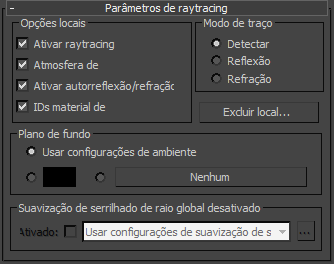 Configurações do tracejador de raio para abrir a implementação Parâmetros globais do tracejador de raio.