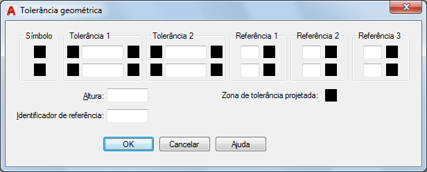 Depois que você selecionar os símbolos de características geométricas, a caixa de diálogo Geometric Tolerance é fechada e o seguinte prompt é exibido: