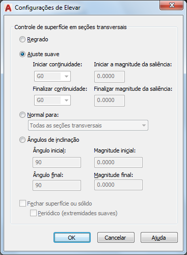 Controla o normal da superfície do sólido ou superfície onde passa pelas seções transversais. (variável de sistema LOFTNORMALS)