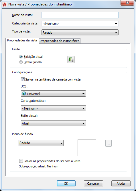 Caixa de diálogo Nova vista/Propriedades do instantâneo