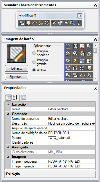 O editor Personalizar interface do usuário (CUI) permite modificar muitos dos elementos da interface do usuário que são utilizados para iniciar um comando no programa.